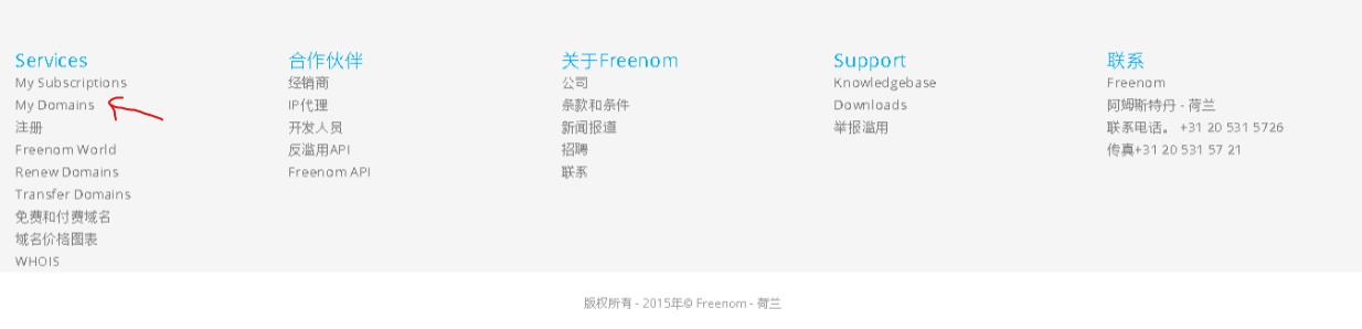 别紧张,关掉页面重新进入官网,之后滑倒最下方选择my domain,如图: